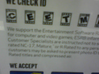 Basically, the policy says they support the software rating system and require a photo ID for anyone who wants to purchase any software rated NC-17, Mature or R. Also, compressed air.